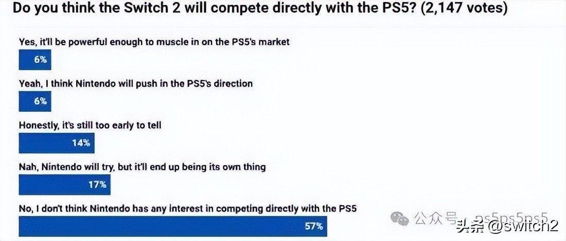 6%的玩家认为Switch2足够强大,在PS5的市场发挥重要作用